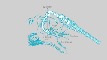 If direct intubation is not possible at first, supraglottic airway management (e.g. laryngeal mask airway, laryngeal tube) is used as a temporary measure to gain time and create the prerequisites for intubation. As soon as the situation is stabilized, intubation is switched to a tracheal tube to ensure the airway stays open in the long term and ventilation is optimal.